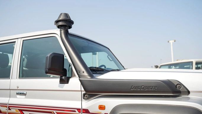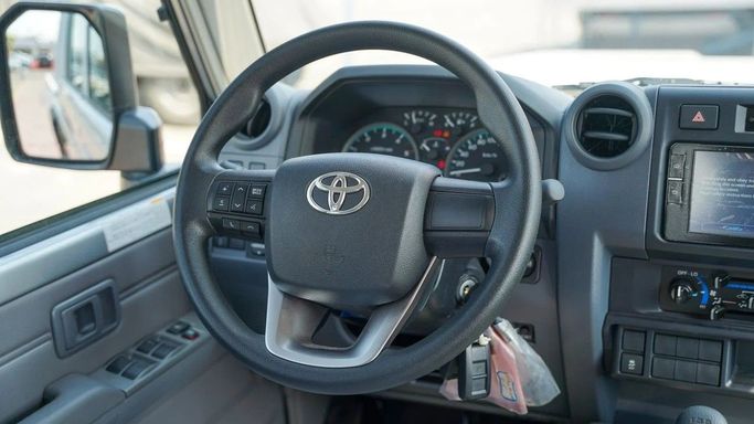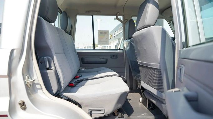 Brand new Toyota Land Cruiser Pick Up for sale in Dubai. Silver 2024 model, available at Force Motors. This car has manual transmission, 8 cylinder engine, 16″ wheels and grey interior. GCC specs.