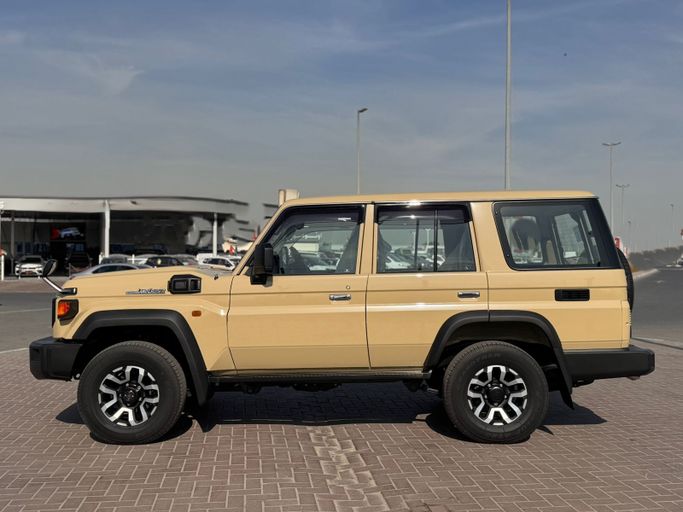 This 2024 Toyota Land Cruiser 70 Series Facelift 2 presents as a well-kept, beige five-door SUV with a single previous owner and a concise 123 km on the odometer, powered by a 2.8-liter diesel engine delivering 204 hp through a manual all-wheel-drive setup. The combination of a rugged, durable design and a modern facelift offers confident on- and off-road performance, while the manual transmission adds a direct connection to the vehicle’s torque-rich character. Inside, you can expect straightforward controls paired with capable driving aids typical of the series, ensuring a