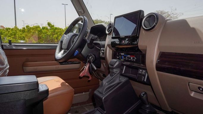 Brand new Toyota Land Cruiser 70 LX 4.0 L. 6 for sale in Dubai. Grey 2025 model, available at Najem Motors FZE. This car has automatic transmission, 6 cylinder engine, 17″ wheels and brown interior. GCC specs.