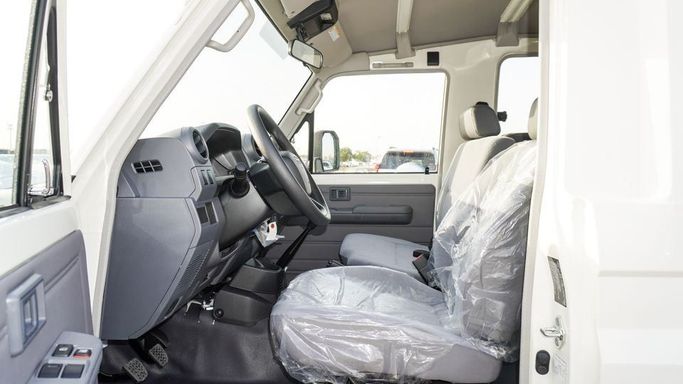 Brand new Toyota Land Cruiser 70 4.0L V6 M/T for sale in Dubai. White 2025 model, available at Najem Motors FZE. This car has manual transmission, 6 cylinder engine, 16″ wheels and grey interior. GCC specs.