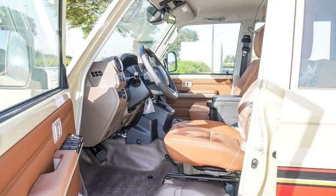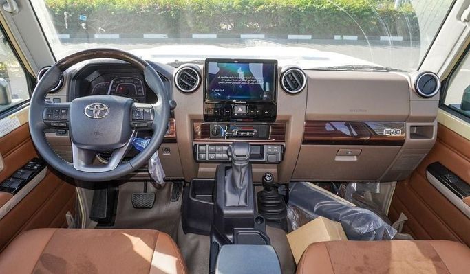 Brand new Toyota Land Cruiser Pick Up LX 4.0L V6 A/T for sale in Dubai. Beige 2025 model, available at Najem Motors FZE. This car has automatic transmission, 6 cylinder engine, 17″ wheels and tan interior. GCC specs.