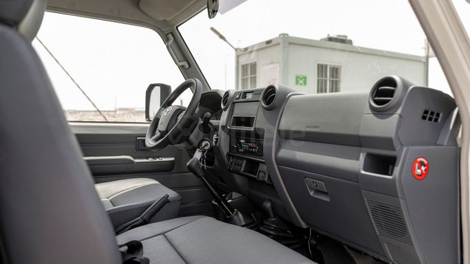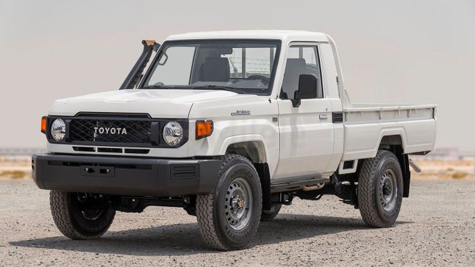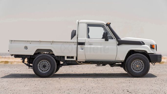 Introducing the brand new 2025 Toyota Land Cruiser 70 Series Facelift 2, a vehicle that beautifully marries rugged capability with modern convenience. This striking single cab pickup, adorned in a pristine white finish, is not just another truck; it’s a statement of power and reliability designed to conquer diverse terrains with ease. Equipped with a robust 4.0-liter gasoline engine delivering an impressive 228 horsepower, this all-wheel-drive (AWD) powerhouse is ready to tackle any challenge you throw its way. Toyota has long been synonymous with durability and performanc