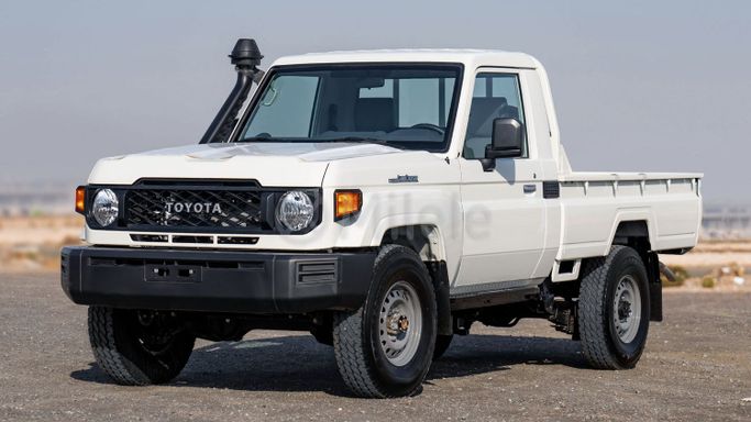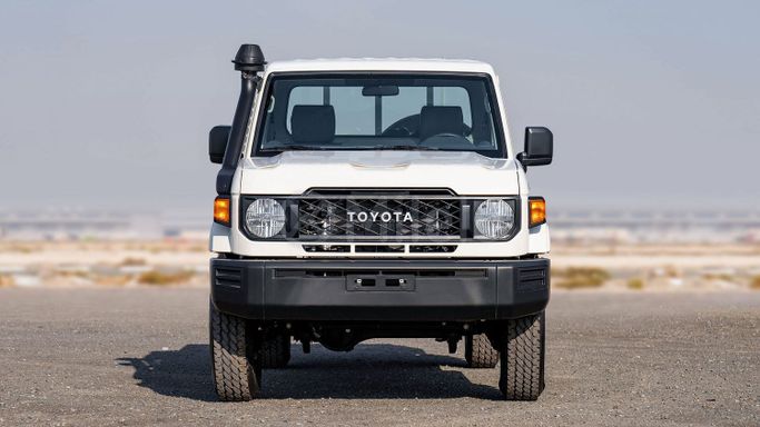 Introducing the latest Toyota Land Cruiser 70 Series Facelift 2, a remarkable blend of rugged capability and modern design, now available in stunning white. This new pickup single cab is equipped with a diesel engine that delivers an impressive 205 horsepower, ensuring you have the power you need for any adventure, whether on or off the road. With all-wheel drive (AWD), you can conquer tough terrains with confidence, making this vehicle an ideal companion for those who value both functionality and reliability. The Land Cruiser's manual transmission offers a direct connecti