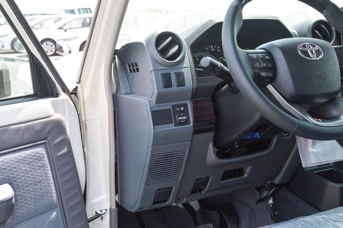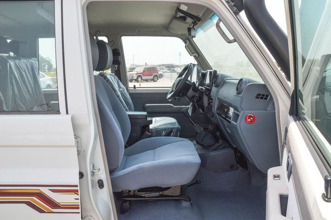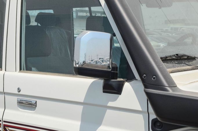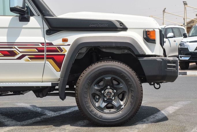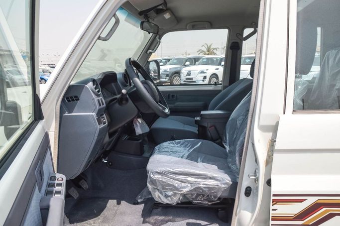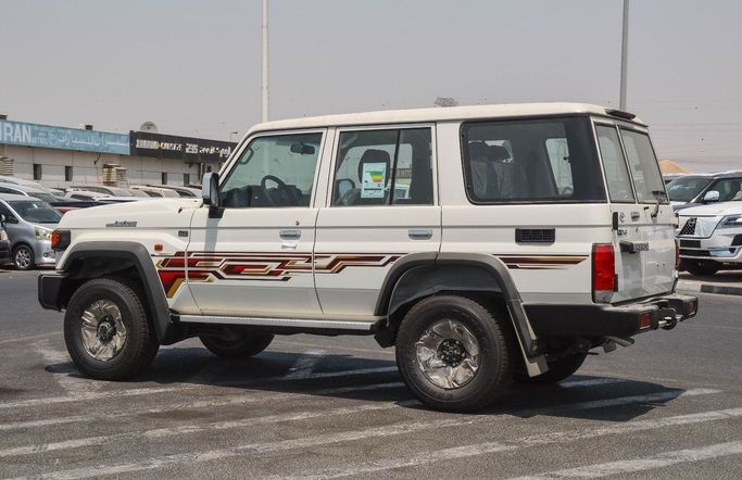 New for 2025, the Toyota Land Cruiser 70 Series Facelift 2 is a rugged five-door SUV in white, designed to handle demanding terrain with reliable comfort and practical refinement. The facelift updates the iconic boxy silhouette with modern touches while preserving the heritage that defines its character. Power comes from a 4.0-liter petrol engine producing 228 hp, paired with a manual transmission and permanent all-wheel drive for direct, confident control on both road and off-road surfaces. Configured to GCC specifications, this version aligns with regional equipment and r