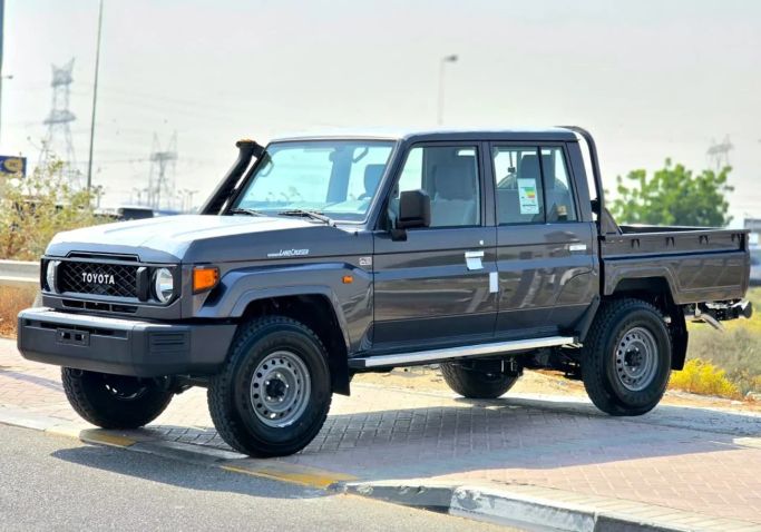 New 2025 Toyota Land Cruiser 70 Series Facelift 2 arrives in GCC-spec, finished in grey, blending rugged capability with everyday practicality. The all-wheel-drive, double-cab pickup is powered by a 4.0-litre petrol engine delivering 228 horsepower, paired with an automatic transmission for smooth, confident responses in a range of conditions. The facelift updates the familiar Land Cruiser silhouette with refined lines and a durable, purpose-built interior designed for long drives, tough tasks, and easy maintenance. Inside, the cabin emphasizes space and robust materials, w