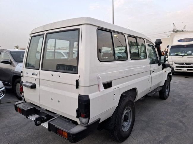 LC Hardtop 5 Door 2.8L 2025 MT M.W White Diesel Introducing the 2025 Toyota Land Cruiser 70 Series Facelift 2, a new-generation 5-door SUV finished in white and tailored to GCC specifications. It packs a 2.8-liter diesel engine delivering 204 horsepower, paired with a manual transmission and all-wheel drive for direct, controllable performance across diverse terrains. The facelifted 70 Series retains the rugged character the line is known for while offering a refreshed, clean silhouette and practical, durable interior that supports long drives and demanding use. Inside, you