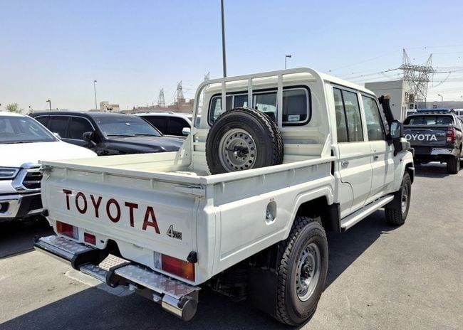 Toyota LC Pickup 4WD 2.8L 2025 MT White Diesel (Export Only) Introducing the 2025 Toyota Land Cruiser 70 Series Facelift 2, a new pickup with a double-cab body in white that blends everyday practicality with rugged capability. It’s powered by a 2.8-litre diesel delivering 201 hp, paired with a manual transmission and all-wheel drive for confident performance in a variety of conditions. Built to European specifications, this model combines a straightforward, durable design with thoughtful ergonomics and ready versatility for work or leisure. With its sturdy chassis and trust