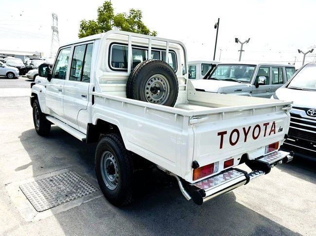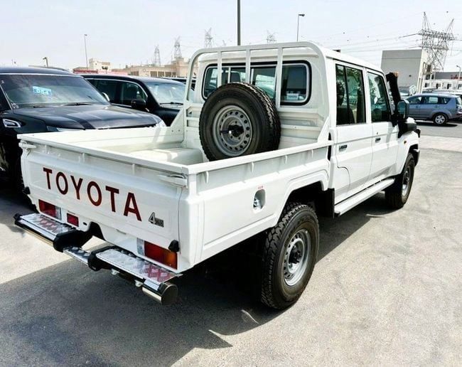 Toyota LC Pickup 4WD 2.8L 2025 AT DC White Diesel (Export Only) The 2025 Toyota Land Cruiser 70 Series Facelift 2 arrives in white as a new GCC-spec double-cab pickup that blends rugged capability with everyday practicality. Under the hood sits a 2.8-liter diesel delivering 204 hp, paired with an automatic transmission and all-wheel drive to handle challenging terrain or steady highway cruising with confidence. The facelift brings a refreshed, purposeful look and a durable, comfortable cabin with straightforward controls designed for long days on work sites or family trips,