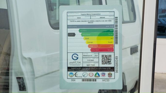 New for 2025, the Toyota Land Cruiser 70 Series Facelift 2 is a purpose-built SUV that blends rugged capability with thoughtful updates. Finished in white, this GCC-spec five-door is powered by a 2.8-liter diesel delivering 204 hp, paired with a manual transmission and all-wheel drive for direct control and dependable traction in varied conditions. The model’s robust body-on-frame construction underpins its durability, while a refined interior focuses on practical comfort and straightforward operation for daily use and longer journeys. The facelift brings subtle design upda