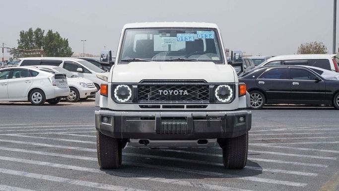 New Toyota Land Cruiser Pick Up 4LX V6 A/T for sale from GT Motors in Dubai. White 2025 model. The car has automatic gearbox, 6 cylinder engine, 17″ wheels and tan interior. GCC specs.