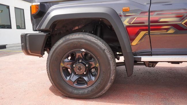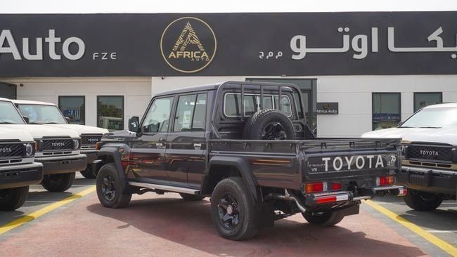 New Toyota Land Cruiser Pick Up 4.0L V6 Double Cabin A/T for sale from Africa Auto in Dubai. Grey 2025 model. The car has automatic gearbox, 6 cylinder engine, 17″ wheels and beige interior. GCC specs.