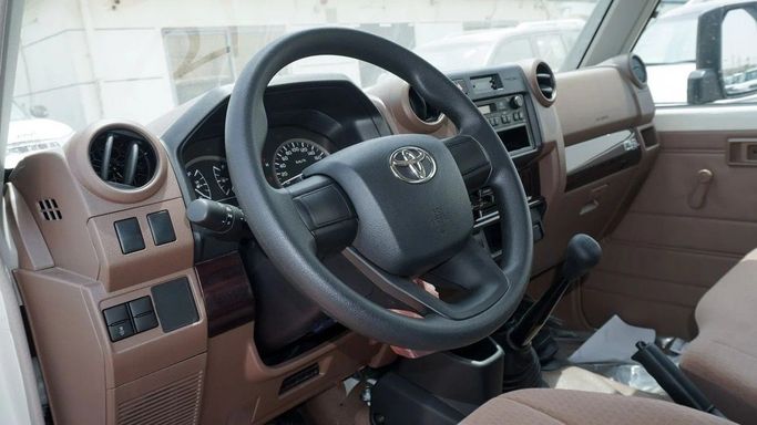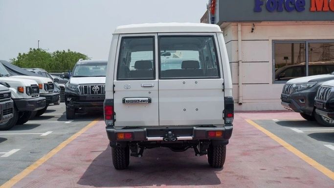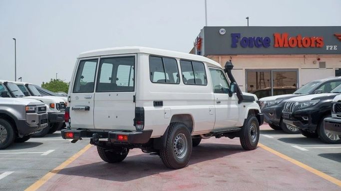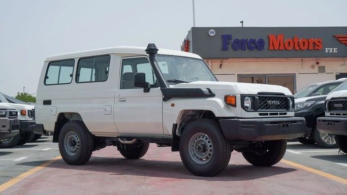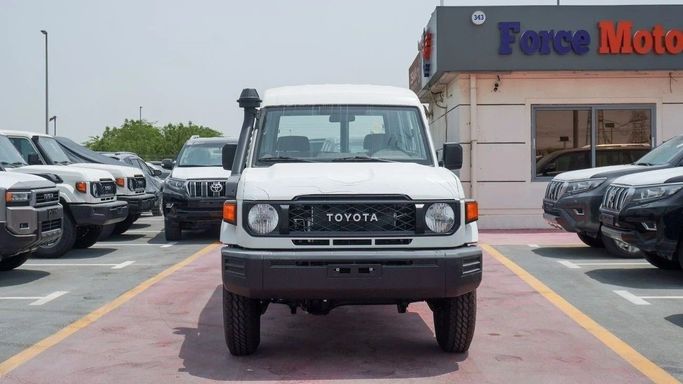 Brand new Toyota Land Cruiser Hard Top 2.8L Diesel for sale in Dubai. White 2025 model, available at Force Motors FZE. This car has manual transmission, 4 cylinder