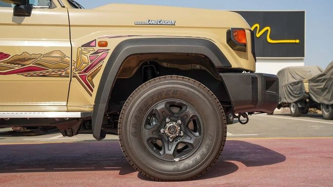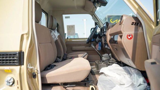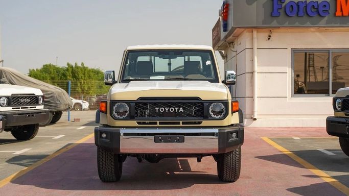 Brand new Toyota Land Cruiser Pick Up for sale in Dubai. Beige 2025 model, available at Force Motors. This car has manual transmission, 6 cylinder engine, 16″