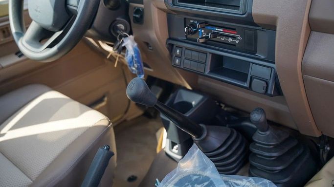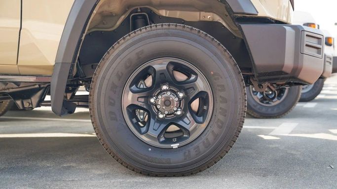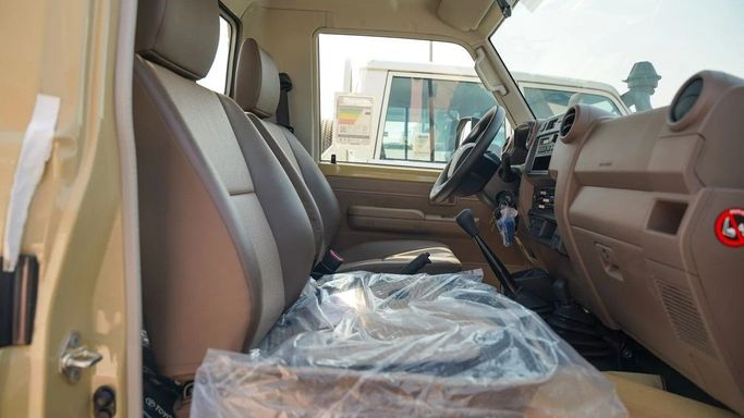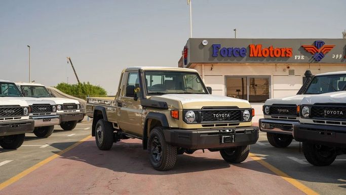 New 2025 Toyota Land Cruiser Pick Up for sale in Dubai. Available from Force Motors. Manual transmission, 6 cylinder engine, 18″ wheels and brown interior.