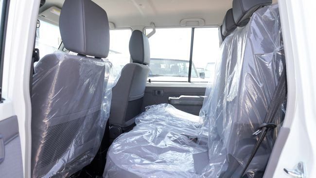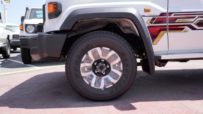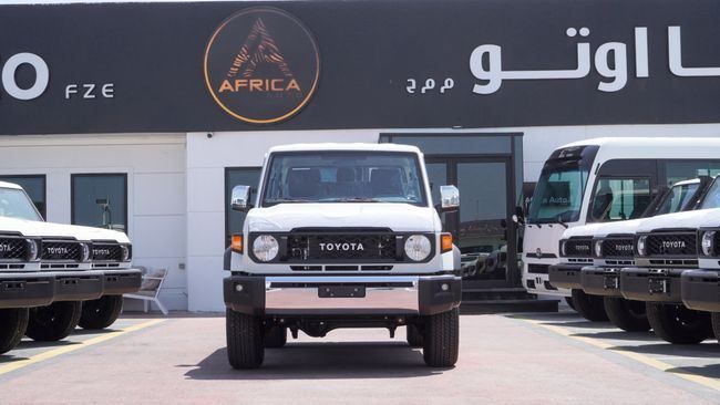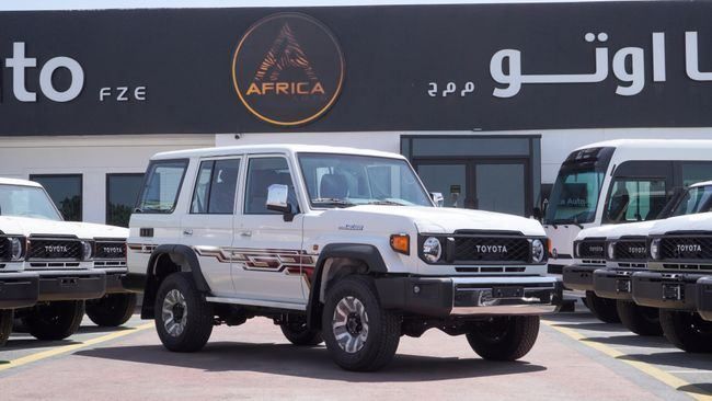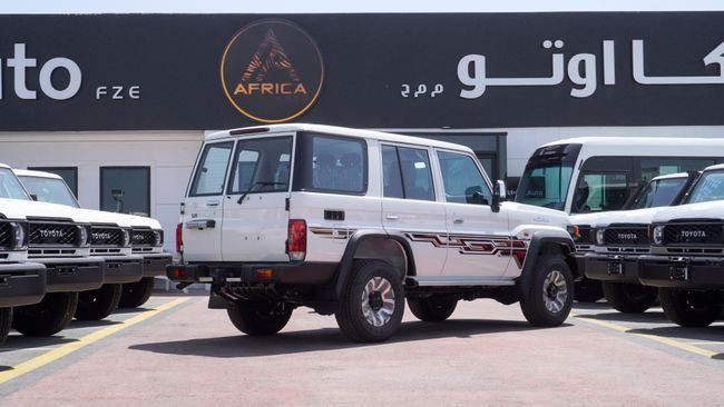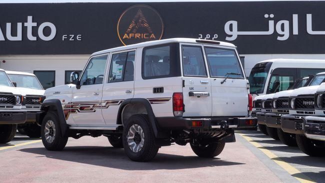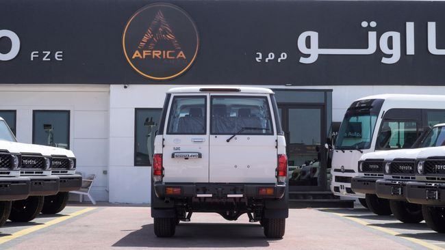New Toyota Land Cruiser 70 2.8 DIESEL 2025 for sale from Africa Auto in Dubai. White 2025 model. The car has manual gearbox, 6 cylinder engine, 16″ wheels and grey interior. GCC specs.