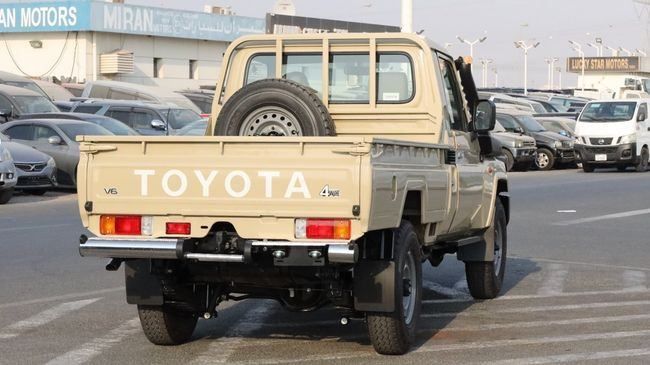 New 2025 Toyota Land Cruiser 70 Series Facelift 2 arrives as a rugged single-cab pickup finished in beige, built to balance everyday practicality with proven off-road capability. Power comes from a 4.0-liter petrol engine delivering 228 hp, paired with a manual transmission and all-wheel drive for steady control across varied conditions. The facelift 2 styling updates refine its utilitarian silhouette while keeping the dependable, no-nonsense character the series is known for. This GCC-spec version is tailored to regional requirements, ensuring the build aligns with local e