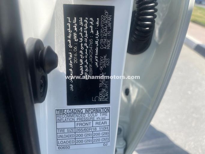 Toyota Land Cruiser Prado ,Model 2016 White Color ,Petrol ,2.7 Liter ,Mileage 32,500 KM Left hand ,Drive ,Back Tier Down ,T.V ,Back Camera ,FM Radio Lather Electric Seats ,7 Seats, Cool Box ,Sunroof 4x4 ,Push Start ,Used Tires ,GCC Specs