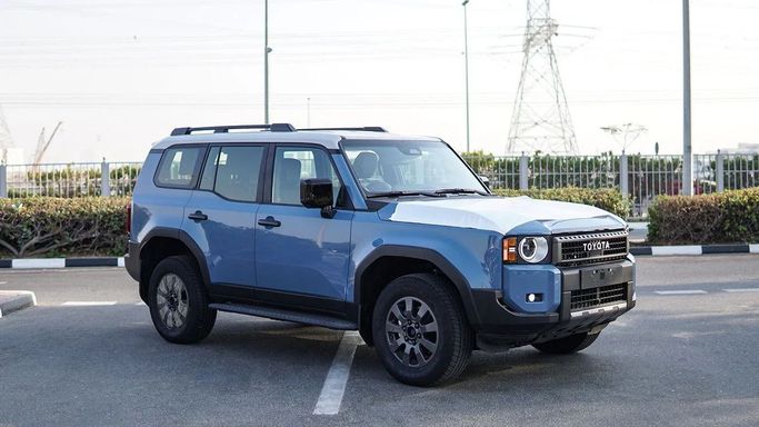 Toyota Land Cruiser Prado Engine: 2.4L Turbo Petrol, 4 Cylinders, In-Line Model Option: VXL FE Variant Code: TOLCPE1239 Exterior Color: Smokey Blue Interior Color: Black Year: 2024 Technical Features Transmission: 8-Speed Automatic Terrain: 4x4 Emission Control: Euro 5 Dimensions (mm): 4925 x 1980 x 1925 Gross Weight (kg): 3000 Kerb Weight (kg): 2190 - 2420 Seating Capacity: 7 Doors: 5 Fuel Tank Capacity: 80 Liters Tyre Size: 265/65R18