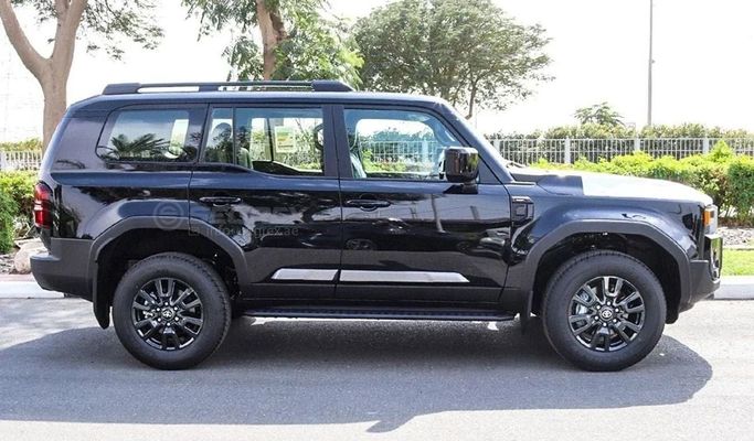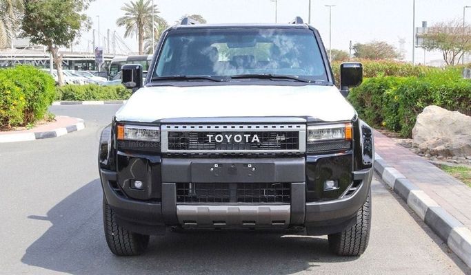2025 Model Toyota Land Cruiser Prado - All Rounder, 2.4L Turbo Petrol 4WD 8A/T Export outside GCC countries only. ---------------------------------------------------------------------- DESCRIPTION - 18" Alloy Wheels - 12.3" Audio Display, AM/FM/BT/USB - Smartphone Integration, Android Auto/Apple CarPlay - Cruise Control - 6 Speakers - 8-Speed Automatic Transmission - ABS, VSC, ATRC, BA, ESS, BHS, EBD - Parking Sensors - Rear Camera - Power Side Mirrors - LED Headlamps, LED Front Fog Lamps - Window Defogger - Sunroof - Cool Box - Power Sea