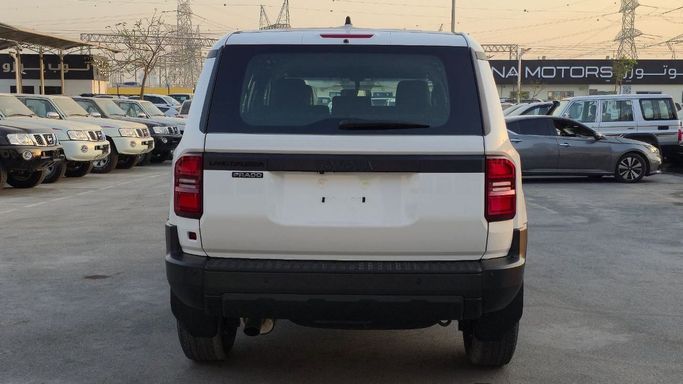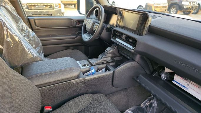 New for 2025, the Toyota Land Cruiser Prado 250 Series is a 5-door SUV finished in white. Under the bonnet sits a 2.4-liter petrol engine delivering 279 horsepower paired with an automatic transmission, all-wheel drive ensuring balanced performance across urban roads and challenging terrain. This GCC-spec edition focuses on reliability and ease of use, combining confident on-road manners with off-road capability, and benefits from a refined ride that handles softly on long journeys while offering ample interior space. The cabin prioritizes comfort with supportive seating, p