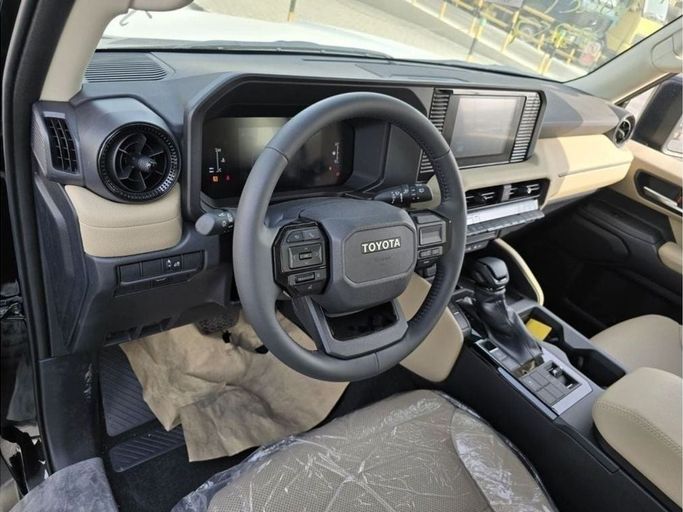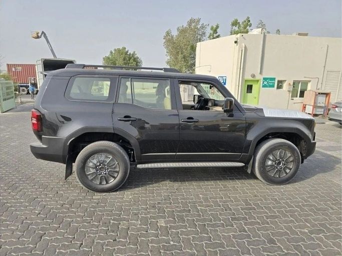 The new Toyota Land Cruiser Prado 250 series, model year 2025, in black, is a five-door SUV with all-wheel drive and automatic transmission. Under the hood is a 2.7-liter gasoline engine with a capacity of 163 hp, providing confident dynamics on the highway and decent traction in off-road conditions. The all-wheel drive and well-thought-out interior layout create comfort and stability in various operating modes, while high-quality finishing materials and an ergonomic dashboard make trips enjoyable and informative. The GCC specification takes into account regional requiremen