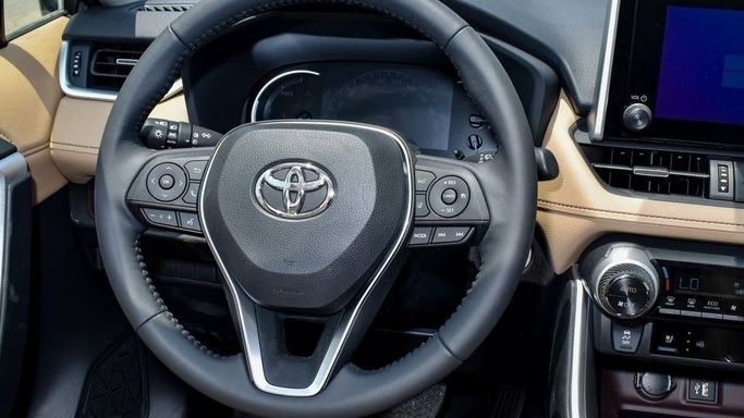 New 2024 Toyota RAV4 HYBRID for sale in Dubai. Available from Najem Motors FZE. Automatic transmission, 4 cylinder engine, 18″ wheels and tan interior. Never driven, GCC specs.