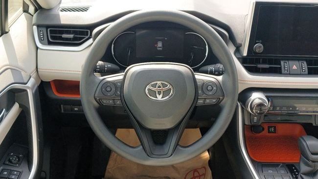 Toyota RAV4 Adventure 2.5L Petrol 4WD 2025YM The 2025 Toyota RAV4 V (XA50) in white is a new-generation five-door SUV designed for everyday practicality and confident performance in GCC markets. It pairs a 2.5-liter petrol engine rated at 205 horsepower with an automatic transmission, and all-wheel drive to deliver steady acceleration and stable handling across varying conditions. The exterior presents a clean, modern silhouette, while the interior emphasizes comfort with supportive seating, thoughtful storage, and intuitive controls. The GCC-spec configuration ensures the