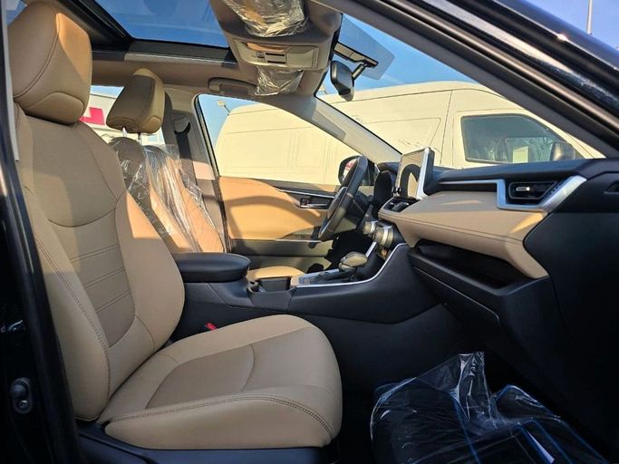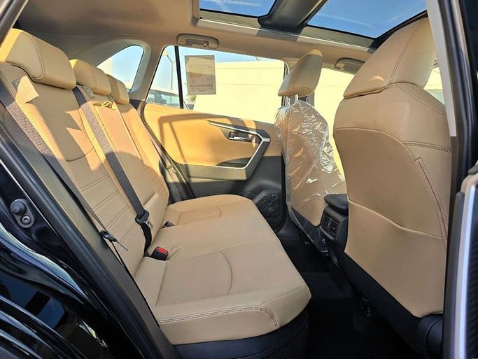 New 2025 Toyota RAV4 (Generation V, XA50) in black, a practical five-door SUV that combines a 2.5-liter hybrid powertrain with an electric motor to produce 222 hp, paired with a smooth CVT and all-wheel drive for confident performance on varied roads. GCC-spec equipment ensures region-appropriate comfort and safety features, while the hybrid setup prioritizes efficiency without compromising response, making everyday driving economical without sacrificing steady, ready acceleration. Inside, the cabin emphasizes comfort and versatility with supportive seating and thoughtful s