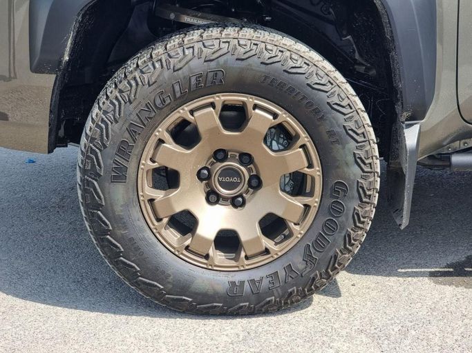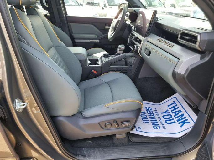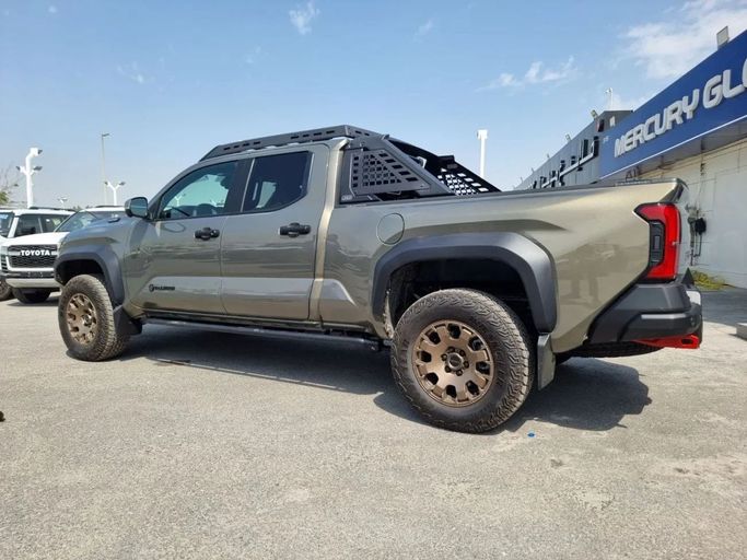 The new Toyota Tacoma IV generation is a pickup truck featuring a double cabin and all-wheel drive (AWD), equipped with an automatic transmission. The 2.4-liter hybrid powerplant develops 326 hp, ensuring confident dynamics on the road and stable control in various conditions. The body color is bronze, and the style is strict and modern, emphasizing practicality and reliability. The regional specification is American, which meets local requirements and options. The warranty is valid until February 1, 2027, providing long-term confidence. Inside, there is a spacious cabin wi