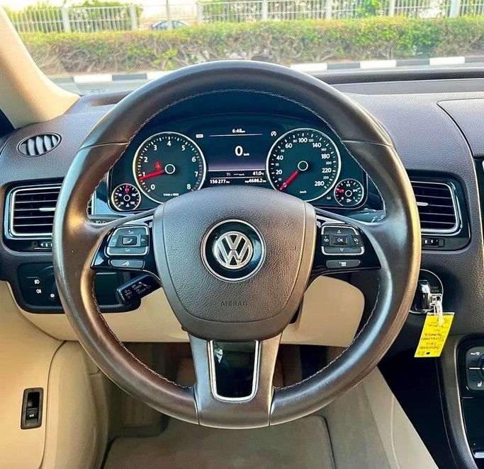 VW Touareg 2016 156,000 KM GCC Specifications Features - 4 Wheel Drive - All Wheel Drive - All Wheel Steering - Cruise Control - Dual Exhaust - Front Airbags - Power Steering - Rear Wheel Drive - Side Airbags - Tiptronic Gears - Air Conditioning - AM/FM Radio - Aux Audio Input - Bluetooth System - CD Player - Climate Control - Fog Lights - Leather Seats - Parking Sensors - Performance Tires
