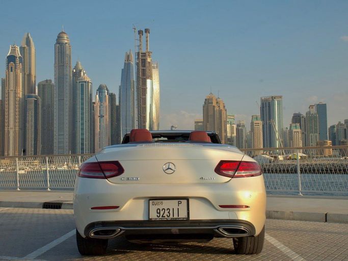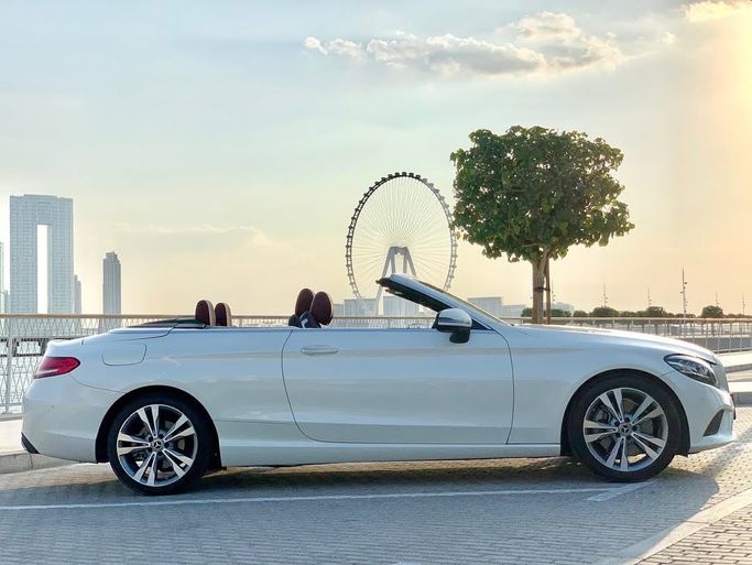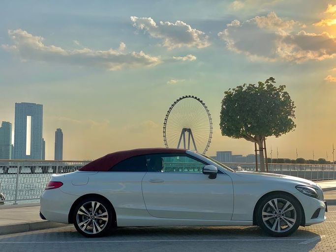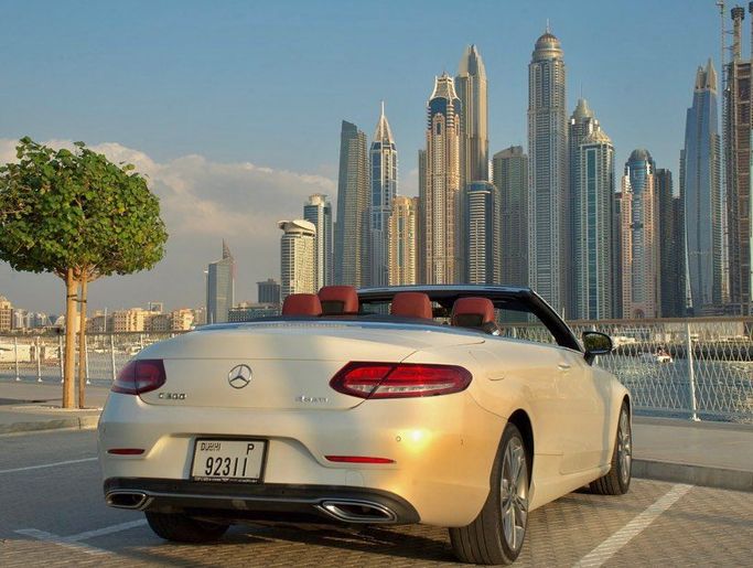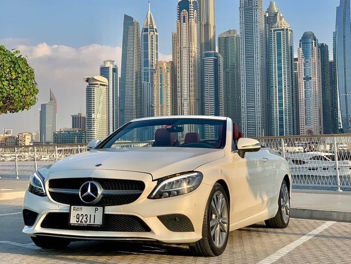 Experience the Mercedes-Benz C-Class Cabriolet (W205, facelift) from 2022, a refined choice that blends comfort with thoughtful practicality for sunny-day drives and beyond. Its 2.0-liter turbo engine delivers 258 hp with smooth, confident acceleration, while the automatic transmission and all-wheel drive help maintain stability in varied conditions. The sleek white exterior paired with a striking red interior creates a premium, inviting atmosphere inside the cabin, where refined materials and a well-appointed layout support relaxed cruising. An open-top experience is compl