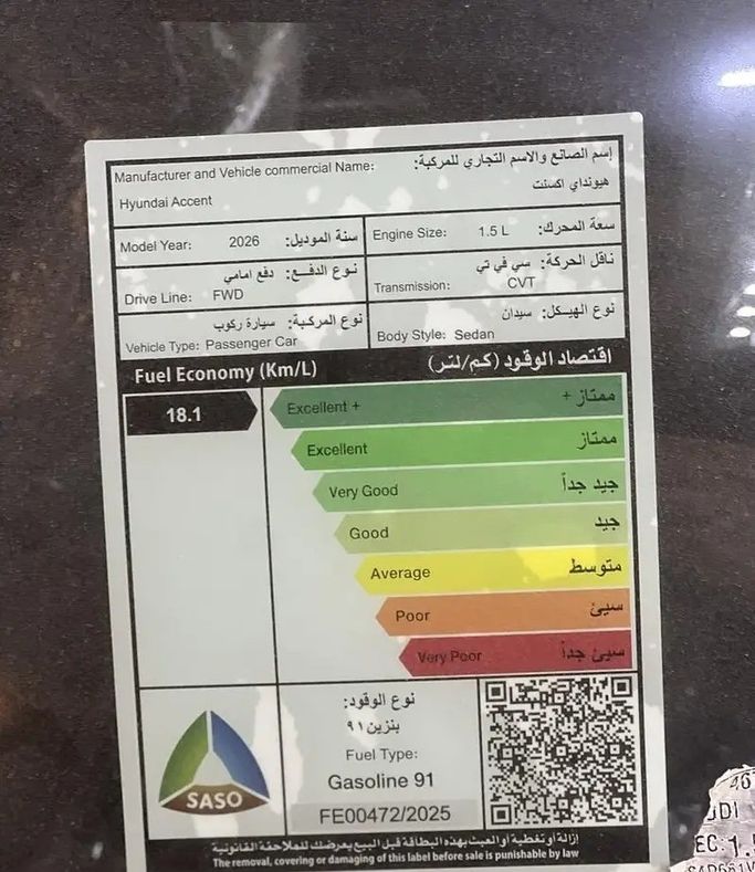 استاندر 2026 قير اوتماتيك بنزين السلام عليكم ورحمة الله وبركاتة شركة اضواء خميس مشيط للسيارات عملائنا الأعزاء يسرنا ان نقدم لكم هذا العرض كما نعمل جاهدين على تقديم افضل العروض لكم وهدفنا دائما ارضائكم . بيانات السيارة نوع الـسياره هيونداي اكسنت الـــمـــوديـــل 2026 المواصفات * محرك سعة 1.5 لتر 115 حصان * ناقل حركة أتوماتيكي ذكي متغير IVT * حركة مقود قيادة يدوية لالعلى و اسفل * تحكم متعدد في وضعيات القيادة * وسادة هوائية للسائق والراكب * فرامل مانعه للانغلاق * نظام تحكم بالثبات * نظام المساعدة على صعود المرتفعات * نظام قياس ضغط الايطارات * المواصفات الخارجية *