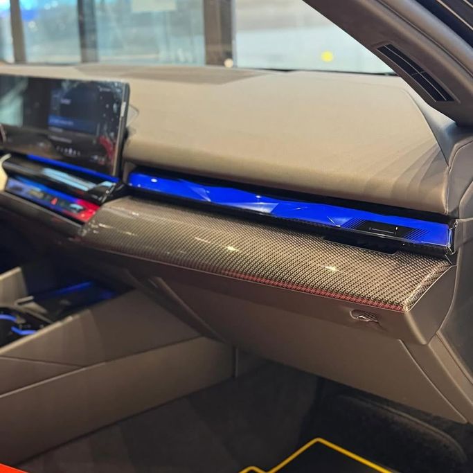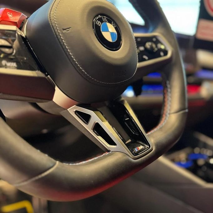 The 2025 BMW M5 (G90) in black is a four‑door sedan that blends blistering performance with everyday refinement. Under the hood sits a 4.4‑liter twin‑turbo V8 with hybrid assist, producing 727 horsepower and strong torque, routed through an automatic transmission and BMW's xDrive all‑wheel drive for confident grip in all conditions. The suspension and chassis are tuned to deliver precise, balanced handling without compromising ride quality, making it suitable for both spirited drives and longer journeys. Inside, the cabin pairs premium materials with ergonomic comfort, fea