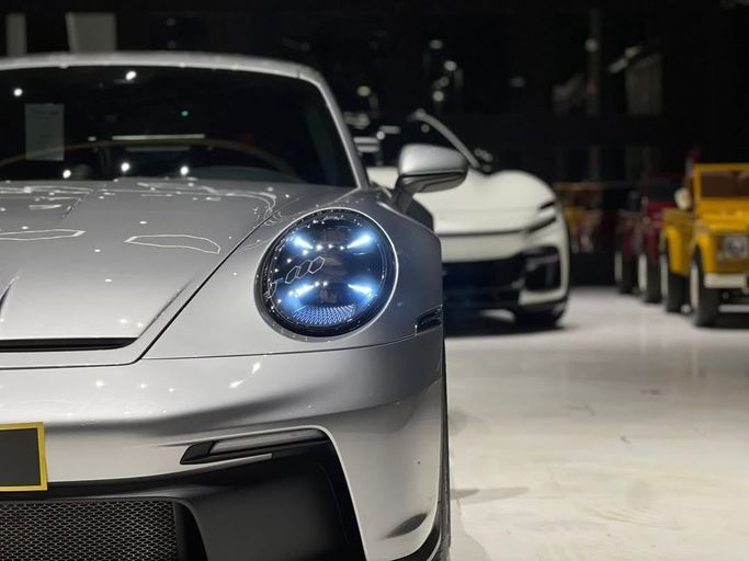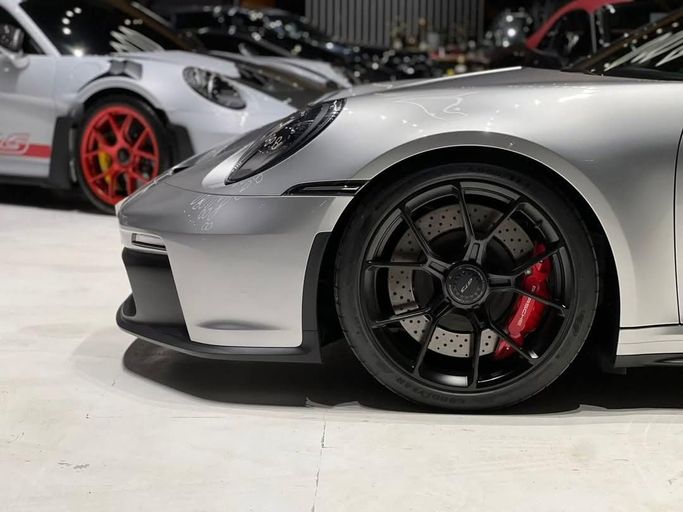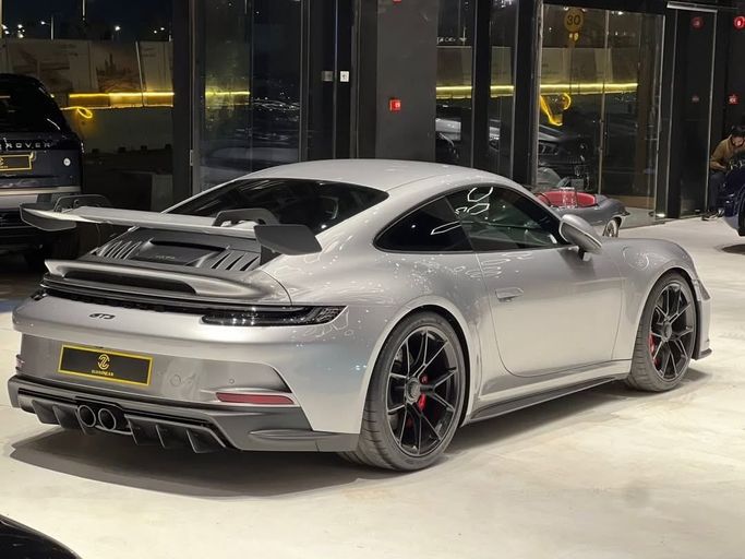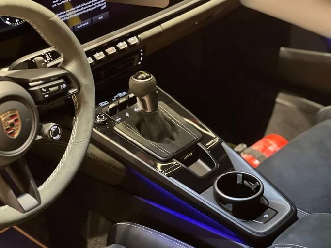 This 2024 Porsche 911 GT3 (992) is a low-mileage, single-owner coupe finished in grey, powered by a 4.0-liter flat-six that delivers 510 horsepower through a precise six-speed manual and rear-wheel drive. The GCC specification ensures regional compliance, while the combination of a naturally aspirated engine, track-tuned chassis, and direct steering creates an engaging drive on winding roads. Inside, the cabin remains focused and refined, with supportive sport seats, high-quality materials, and clear driver-oriented instrumentation that balance sophistication with purpose.
