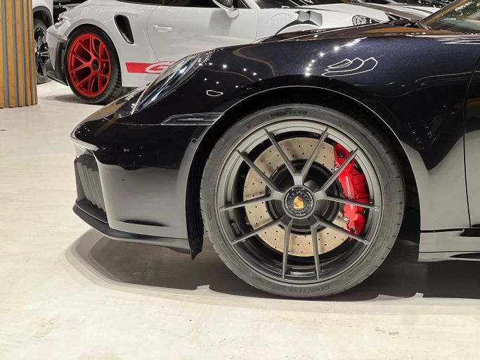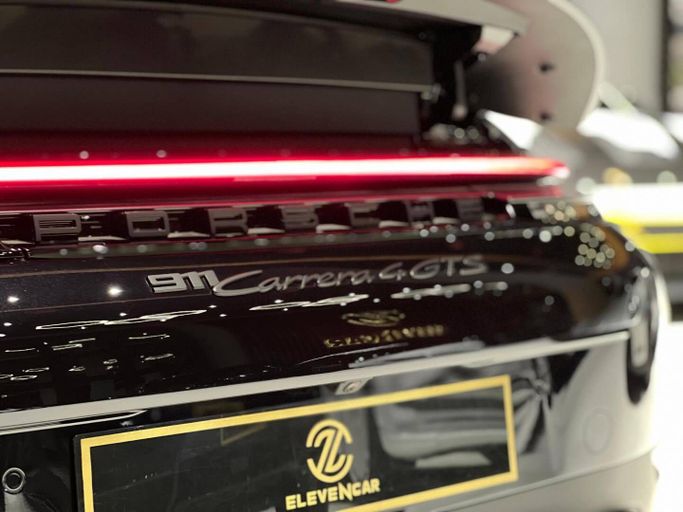 New 2025 Porsche 911 Cabriolet (992, Gen VIII) in black presents the open-top interpretation of the Carrera 4 GTS, blending Porsche engineering with everyday usability. Its 3.0-liter petrol flat-six generates 480 horsepower, with all-wheel drive delivering confident traction through corners and varied road conditions. The Automated Manual Transmission provides crisp gear changes and a direct connection to the engine, aligning with the car's focused, driver-oriented character. Inside, the cockpit offers refined materials and supportive seating, with a quiet highway ride that