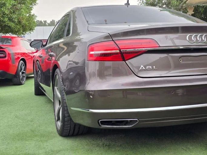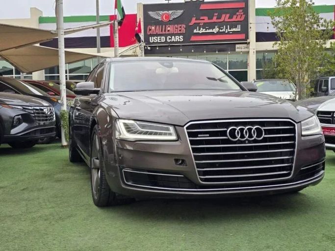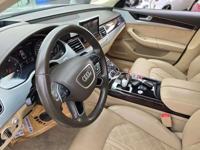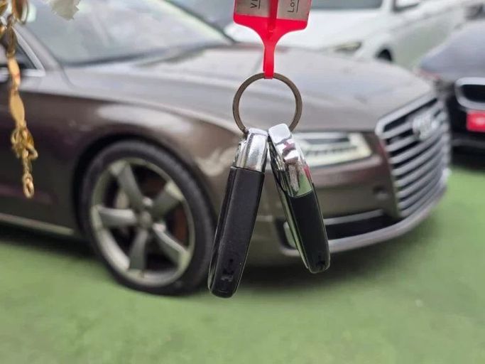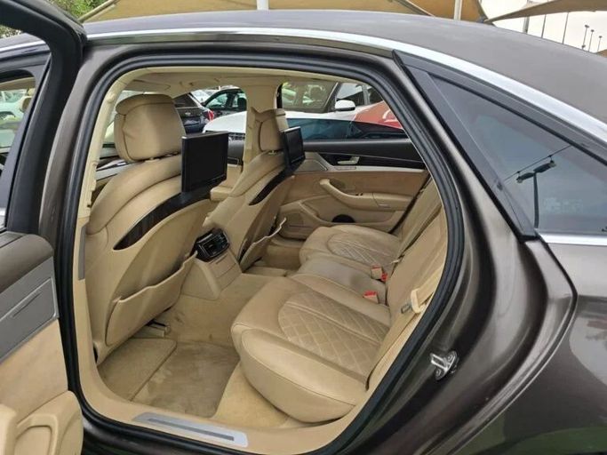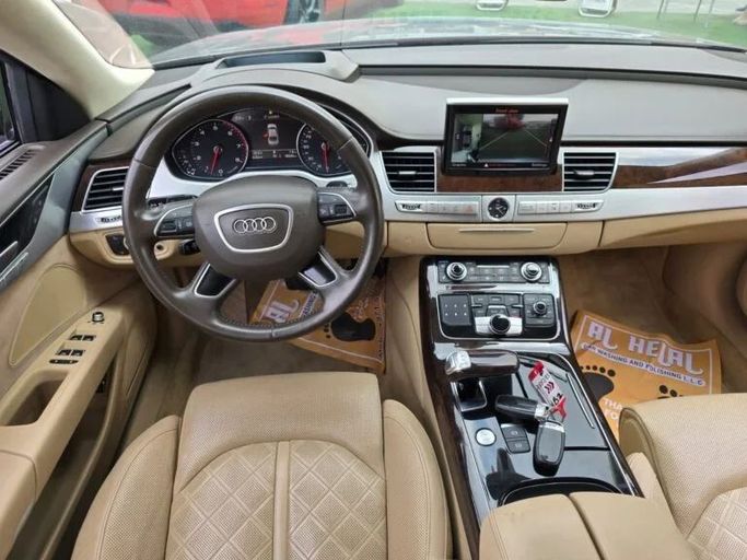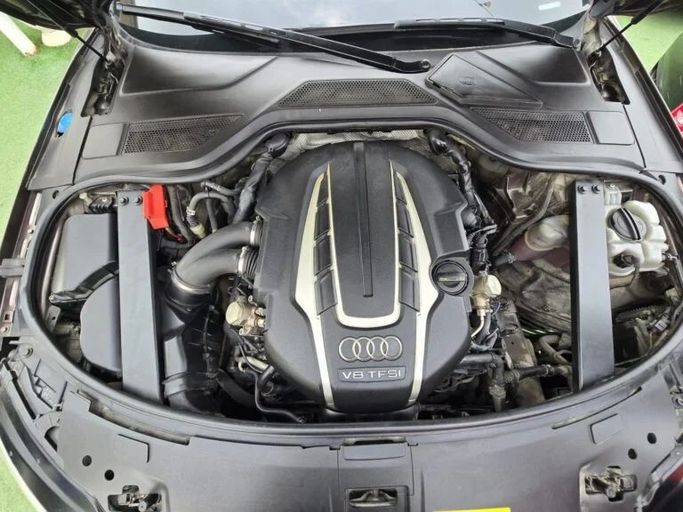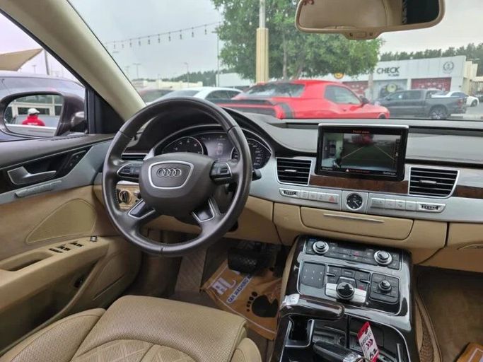 This 2015 Audi A8 (III D4 facelift) is a one-owner GCC-spec sedan finished in grey. It pairs a 4.0-liter TFSI V8 producing 435 horsepower with an eight-speed automatic transmission and quattro all-wheel drive, delivering strong performance alongside a refined, quiet highway ride. With 96,000 km on the clock, it offers a mature balance of executive comfort and dynamic capability, underpinned by the luxury and advanced technology the A8 is known for. The GCC specification ensures regional compliance while maintaining the elegant, spacious cabin and premium feel that make this