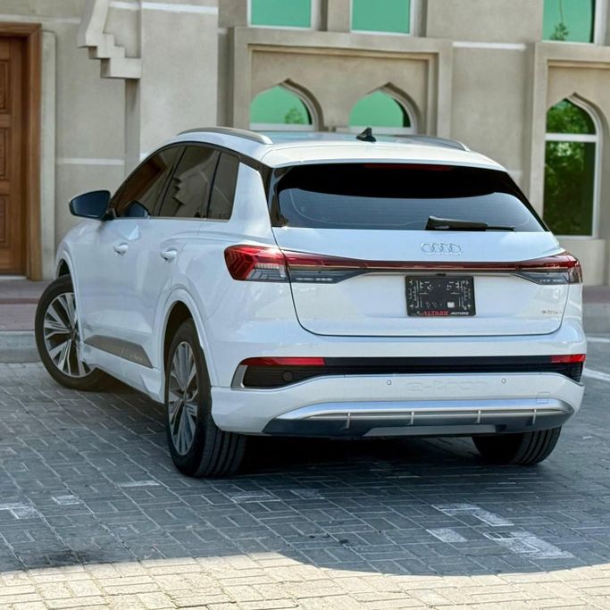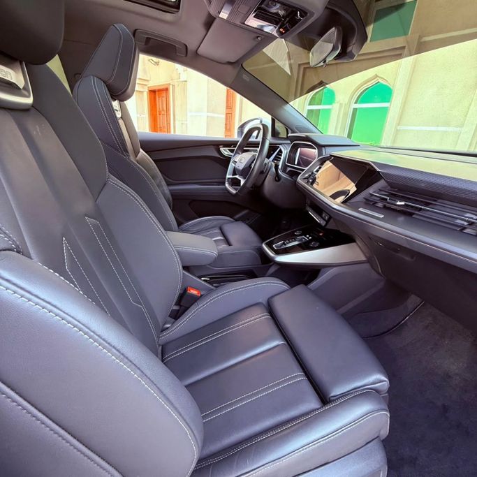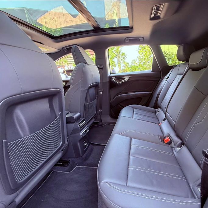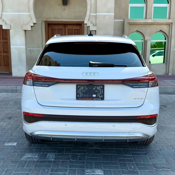 Audi E tron Q4 55 Phil electra Model 2023 Dye agency Without accidents It has a guarantee From AMP until 2027 Higher specifications Panoramic sunroof Electric leather chairs+ Merry electric Cruise control + anti-skid Touch screen + rear camera Walking only 25,000 km Two agency keys Agency status AED 78,000 is required