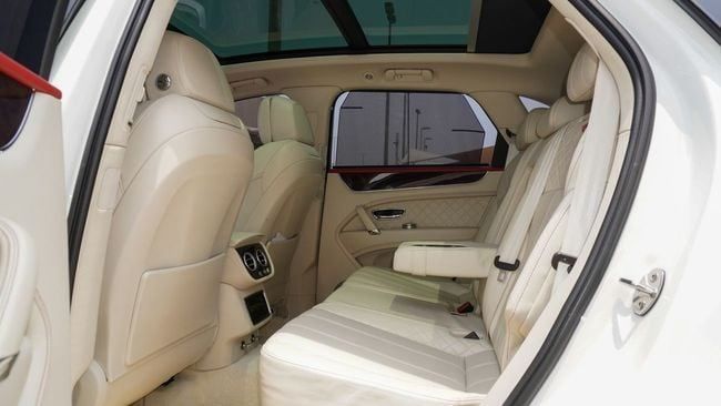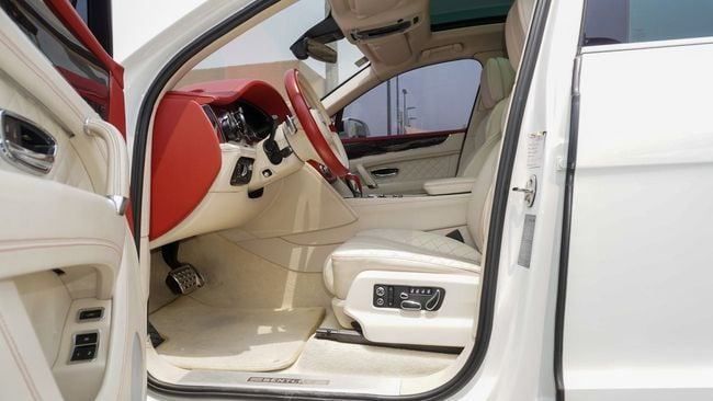 Used Bentley Bentayga for sale in Sharjah. White 2017 model, available at Al Nujoom Al Malakiah Used Cars. This car has automatic transmission, a 12 cylinder engine, 22″ wheels and beige interior. 141,175 km, GCC specs.