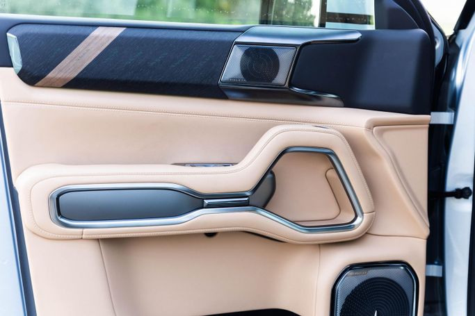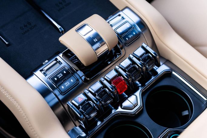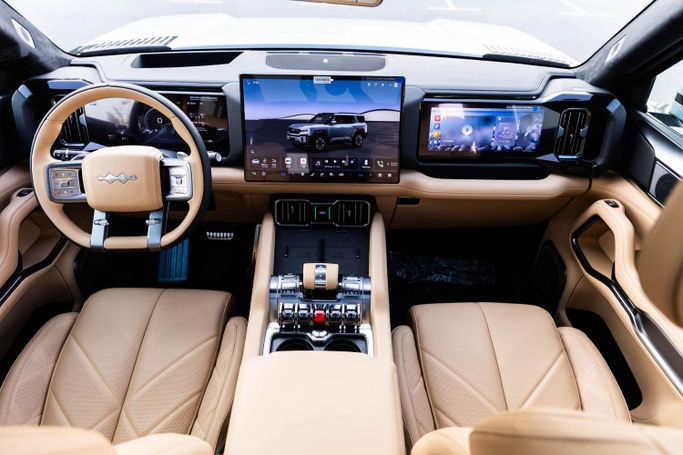 New for 2025, the BYD FangChengBao Leopard 8 is a five-door SUV finished in a rich golden tone. It pairs a 2.0-liter hybrid powertrain with an advanced CVT and all-wheel drive, delivering up to 748 hp in the high-performance modification. The setup blends strong on-road acceleration with confident, all-weather handling, while the CVT offers smooth delivery across everyday driving. Inside, the cabin emphasizes comfort and practicality with a clean, modern interface and thoughtful materials designed for long days on the road. Tailored to Chinese specifications, this Leopard 8