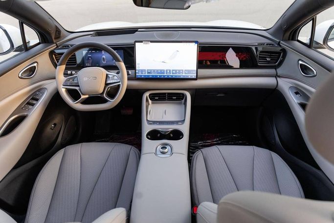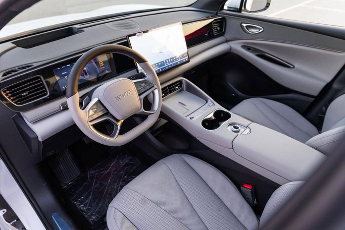 New for 2025, the BYD Sea Lion 06 is a five-door SUV finished in white, powered by a 1.5-liter hybrid producing 218 horsepower and paired with a CVT for smooth, steady acceleration. The front-wheel-drive layout prioritizes efficiency and predictable handling, while the hybrid system blends petrol and electric power for enhanced everyday performance and lower fuel use. Inside, the cabin focuses on comfort and practicality, with BYD’s contemporary design language and a technology package aligned with Chinese specifications. The model carries a warranty through December 1, 203