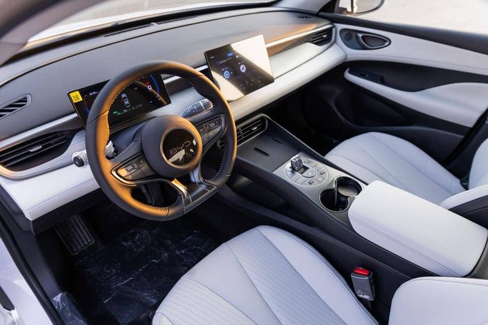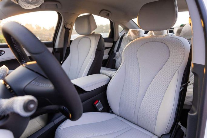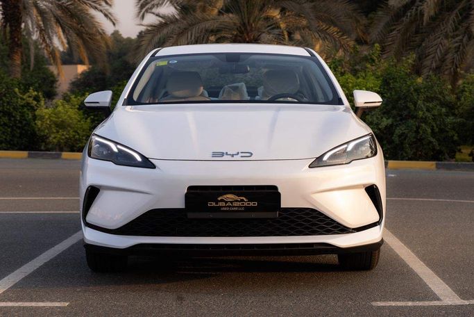 The BYD Seal 05 in pristine white is a new 2025 sedan powered by a 1.5-liter hybrid system delivering around 163 horsepower through a CVT and front-wheel drive. The hybrid setup blends brisk, responsive acceleration with efficient cruising, making it well suited to daily commuting and longer trips alike. Its clean, contemporary silhouette pairs with a comfortable cabin that prioritizes quiet ride quality, supportive seating, and straightforward controls. Being configured for Chinese markets, it offers modern connectivity and safety features that align with everyday needs, w