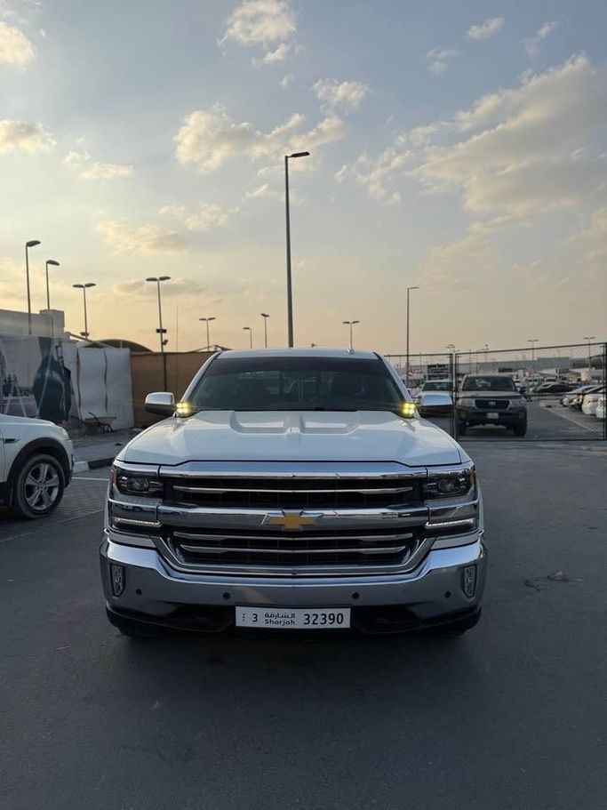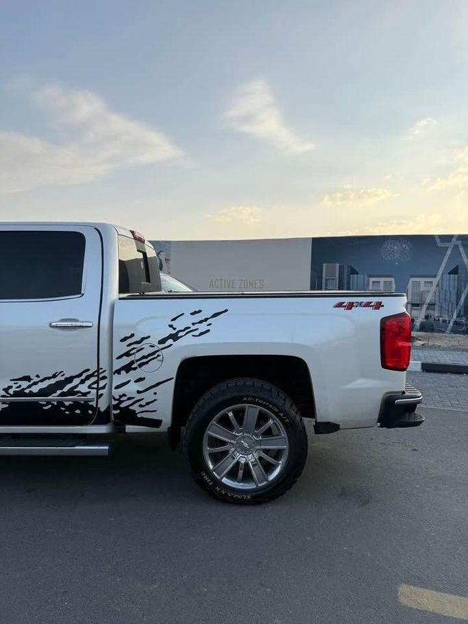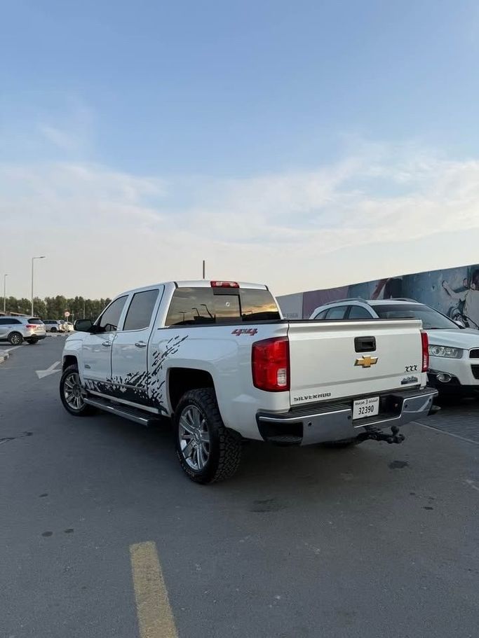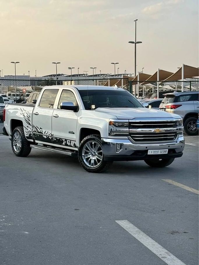 2018 Chevrolet Silverado III (K2XX) Facelift, a double-cab pickup truck in white, equipped with a 4.3-liter V6 gasoline engine with 285 hp and an automatic transmission. AWD (all-wheel drive) provides confident grip on all roads. Inside, there is a spacious double cabin, comfort for passengers, and a practical cargo compartment. The appearance of the updated facelift combines modernity with a reliable, concise body line. The engine, in combination with the automatic transmission, delivers smooth acceleration and powerful traction, while the AWD allows you to confidently s