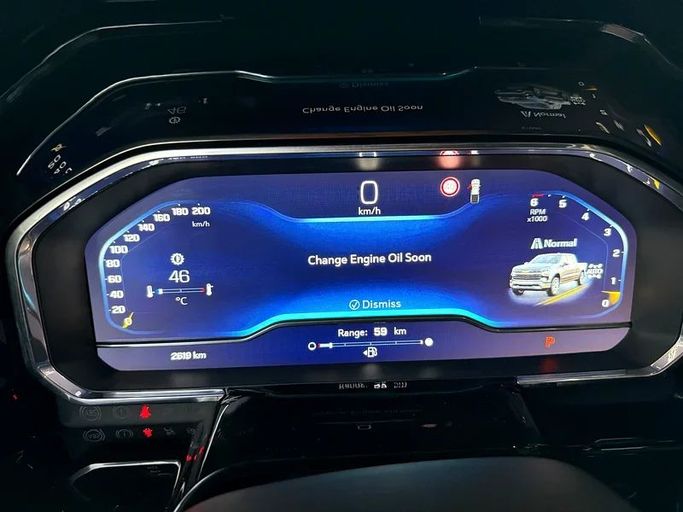 2023 Chevrolet Silverado RST, Gulf model, original paint, original inspection, stored, only 2,600 km on the odometer, Gulf specs, automatic transmission, leather seats, blue color, beige interior, large screen, rear camera, four-wheel drive.