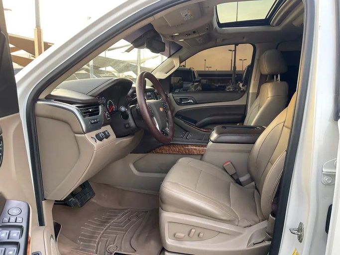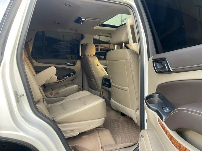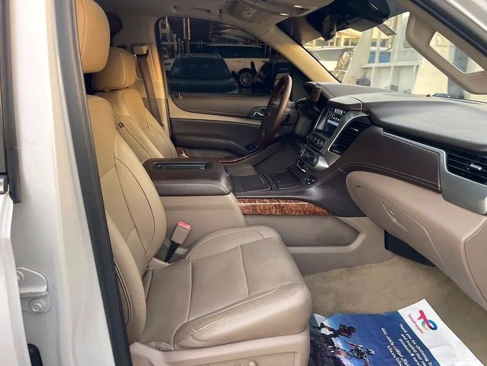 The 2018 Chevrolet Tahoe IV is a full-size SUV in white, featuring American specifications and all-wheel drive. Under the hood, it has a 6.2-liter gasoline V8 engine with a capacity of 426 hp, paired with an automatic transmission. The vehicle has had one owner and has a mileage of approximately 173,000 km. These characteristics ensure confident acceleration and stable driving on various roads, while the spacious body and Generation IV style emphasize practicality and comfort for everyday use and family trips. The white color adds a clean and calm appearance to the car, whi