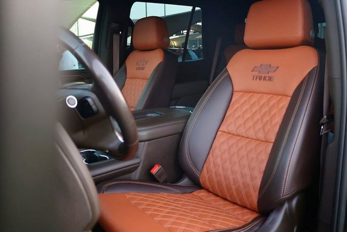 Chevrolet Tahoe LT 2022 V8 GCC 2022 Chevrolet Tahoe LT with a V8 engine, designed for Gulf countries, in excellent condition, serviced by an authorized dealer, no accidents or repaints, factory package No. 1: - Body color: black. - Interior: leather in golden yellow color ("Zaferani"). - Anti-theft alarm system. - FM radio. - AUX audio input. - Bluetooth connectivity. - Exterior body trim package. - Front bumper. - CD playback. - Climate control. - Cooled seats. - DVD player. - Fog lights. - Heated seats. - Keyless ignition. - Keyless starter. - Leather seats. - Navigatio