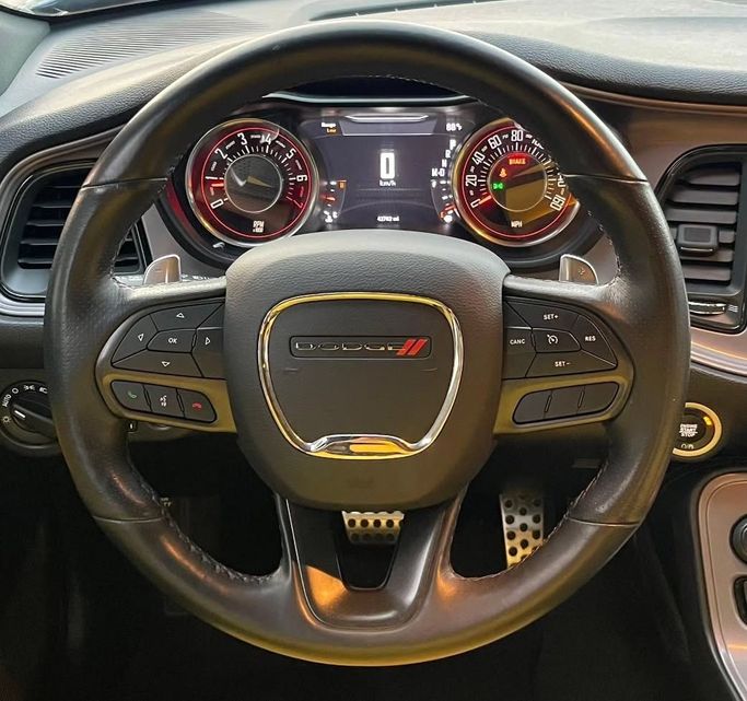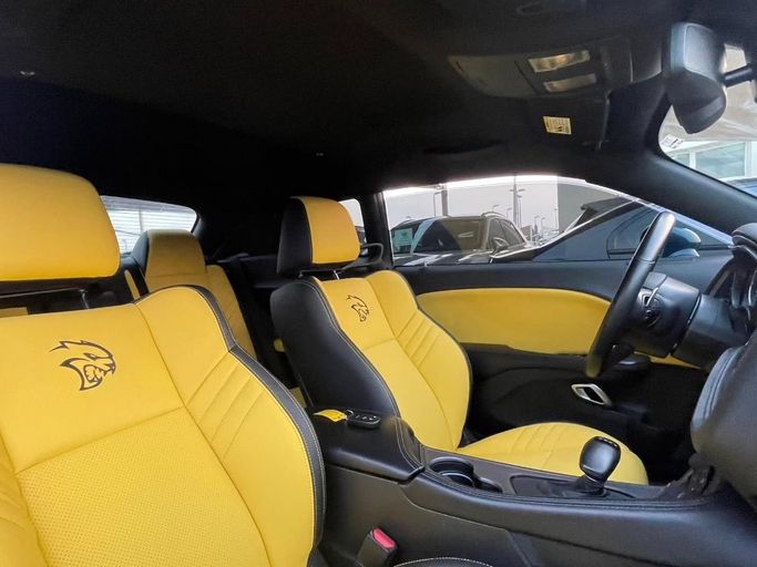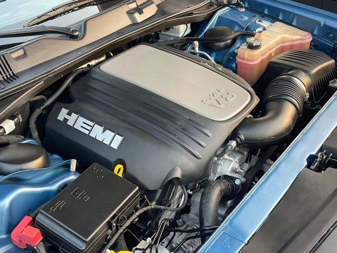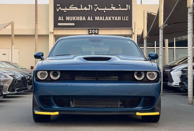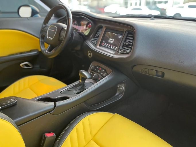 Dodge Challenger HEMI RT 5.7L Model: 2023 Body Kit: SRT Engine: 5700 cc V8 Horsepower: 372 HP Transmission: 8-Speed Automatic Color: Exterior: Blue Interior: Yellow Canadian Spec Custom Paper Specifications: - Exhaust System - Touch Screen - Rear Camera - Rear Sensor - Cruise Control - Start/Stop Push Button - Digital Speedometer