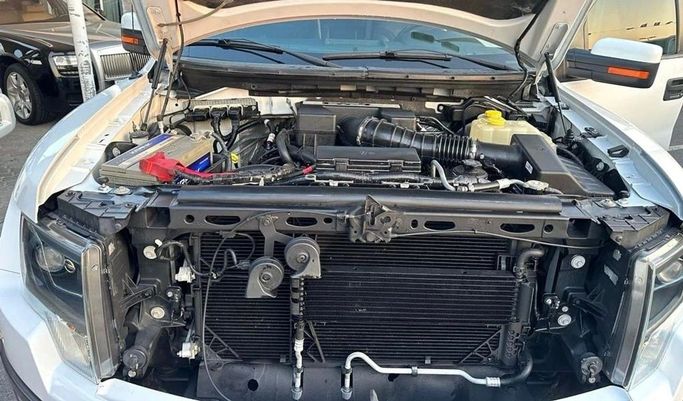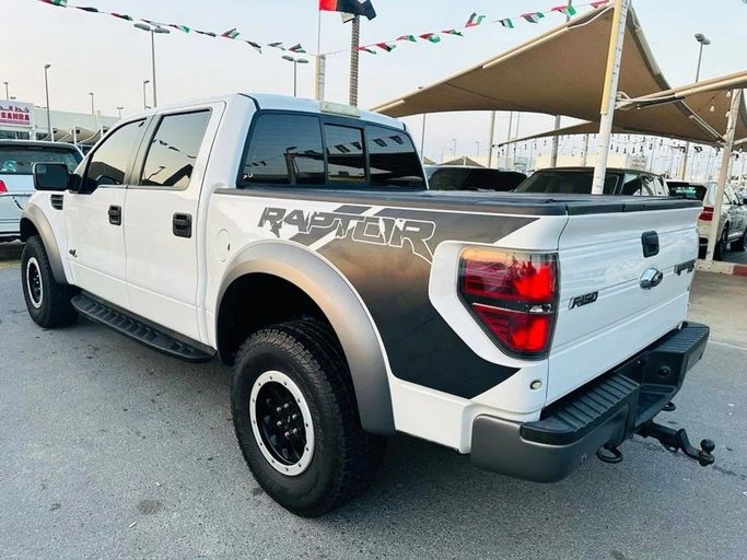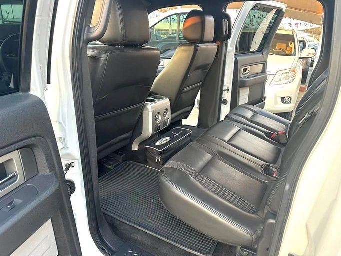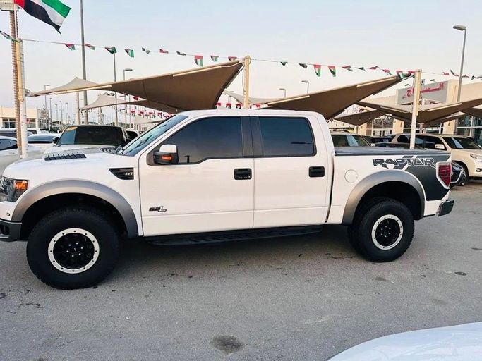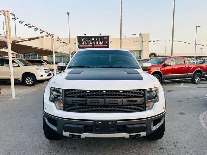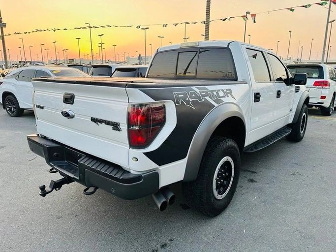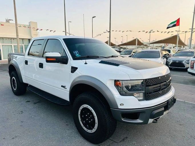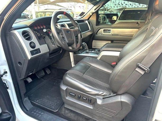 Ford F-150 Raptor with a 6.2-liter engine, Gulf Edition, number one. Full specifications include leather interior, sunroof, large screen, camera, original paint. The exterior color is white with a black interior. Interior features: - AUX audio input - Air conditioning - CD player - DVD player Exterior features: - Performance tires - Premium paint Safety features: - 4WD - LED headlights - Xenon headlights Comfort & Convenience features: - Power locks - Tinted windows Infotainment features: - Bluetooth system - Infotainment head unit - CD/DVD player