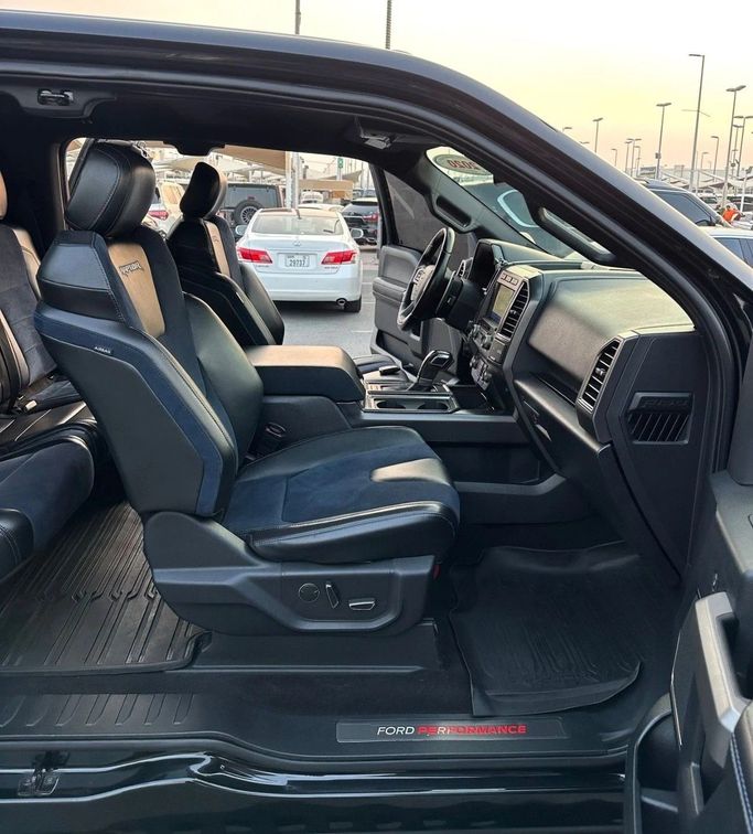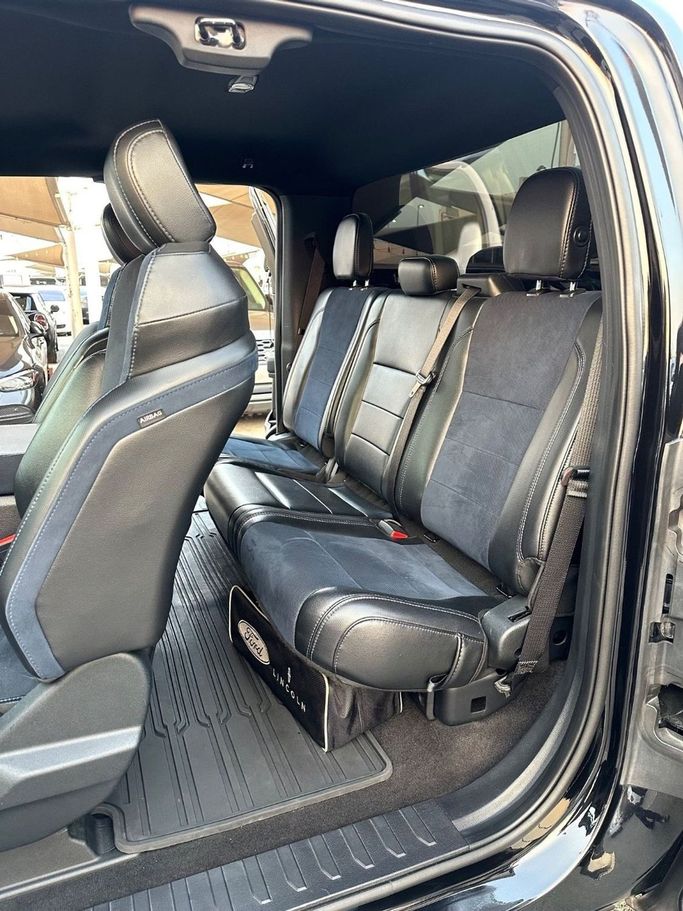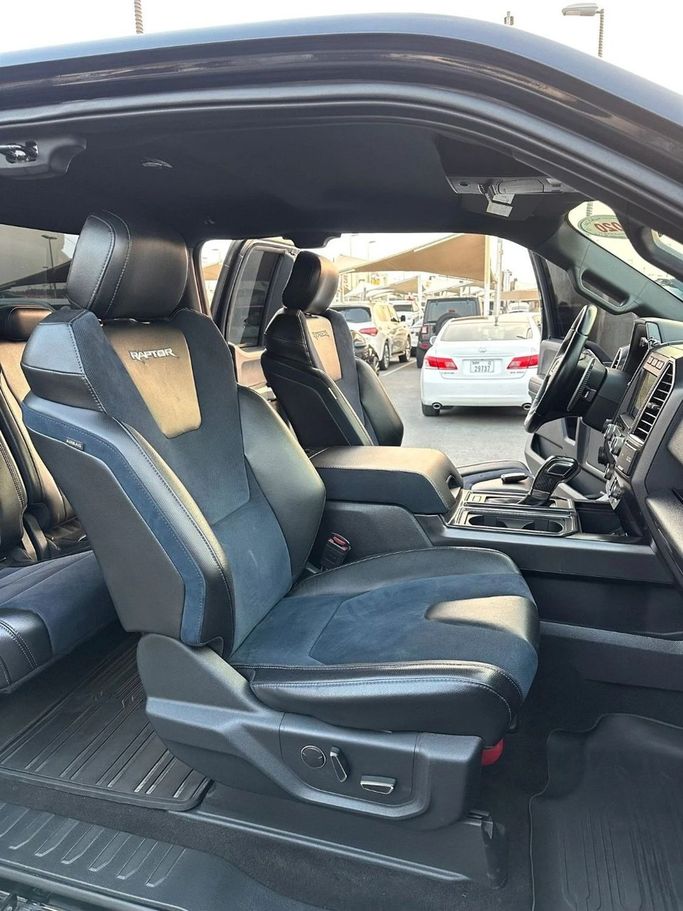 Ford F-150 Raptor, 1.5-door, 6-cylinder, Gulf specifications, leather interior, large screen, camera, push-button start, blind spot monitoring. Original paint, black exterior, black interior. Interior - Air conditioning - CD player - DVD player Exterior - Performance tires - Premium paint Safety - 4WD Comfort & Convenience - Power locks - Tinted windows Infotainment - Bluetooth system - USB & Auxiliary cable - CD/DVD player
