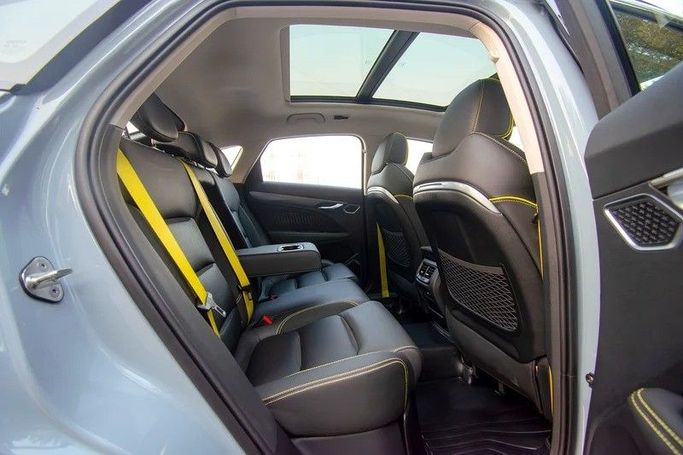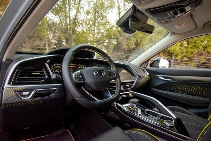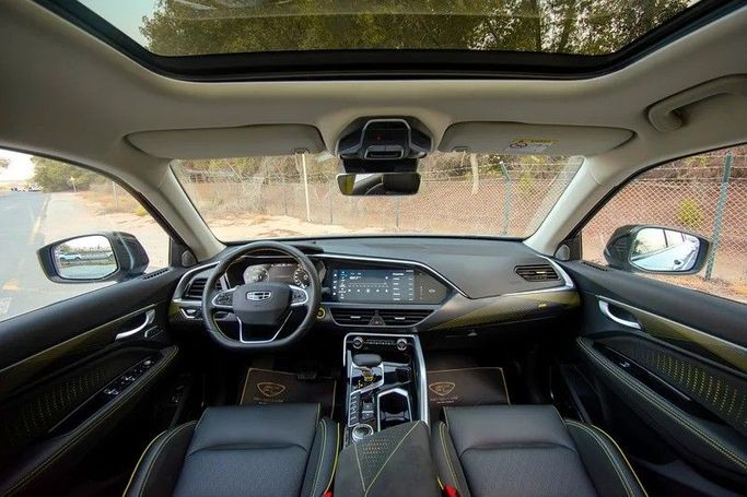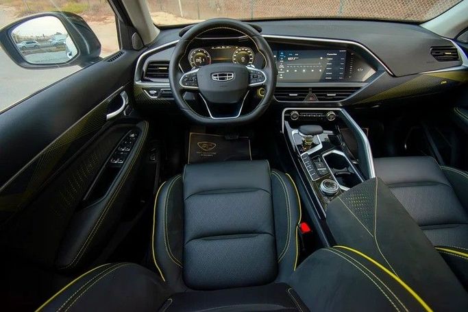 The 2024 Geely Tugella I Facelift in black offers a contemporary look with practical SUV versatility. Power comes from a 2.0-liter gasoline engine delivering 238 horsepower, paired with an automatic transmission and all-wheel drive for confident, smooth performance in a range of conditions. This GCC-spec model brings region-specific equipment, while a single-owner history and 18,614 kilometers underline its well-kept condition. Inside, the design pairs a refined exterior with a comfortable cabin and contemporary controls, making it a balanced choice for daily use and longer