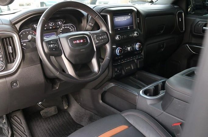 GMC Sierra 2021 AT4 GCC GMC Sierra AT4, 2021 model year, in excellent condition. No accidents, no repainting, fully loaded with option package #1. Exterior color: gray; interior: black leather with gold accents. Features include a display screen, rearview camera, navigation system, dual exhaust, new LED headlights, heated and cooled seats, parking sensors, electronic speedometer, and electronic driver seat adjustment. Top performance specifications. Odometer reading: 117,000 km.